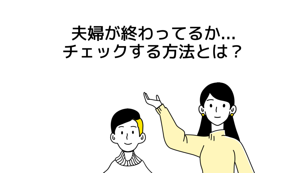 自分たち夫婦が終わってるか、チェックできるものはないかな.... 夫婦として終わっているなら、今後どうなっていくのか知りたい この記事にたどり着いたということは、今あなたは夫婦としてうまくいってないはずです。 ただ、「夫婦として終わってる」と言... -